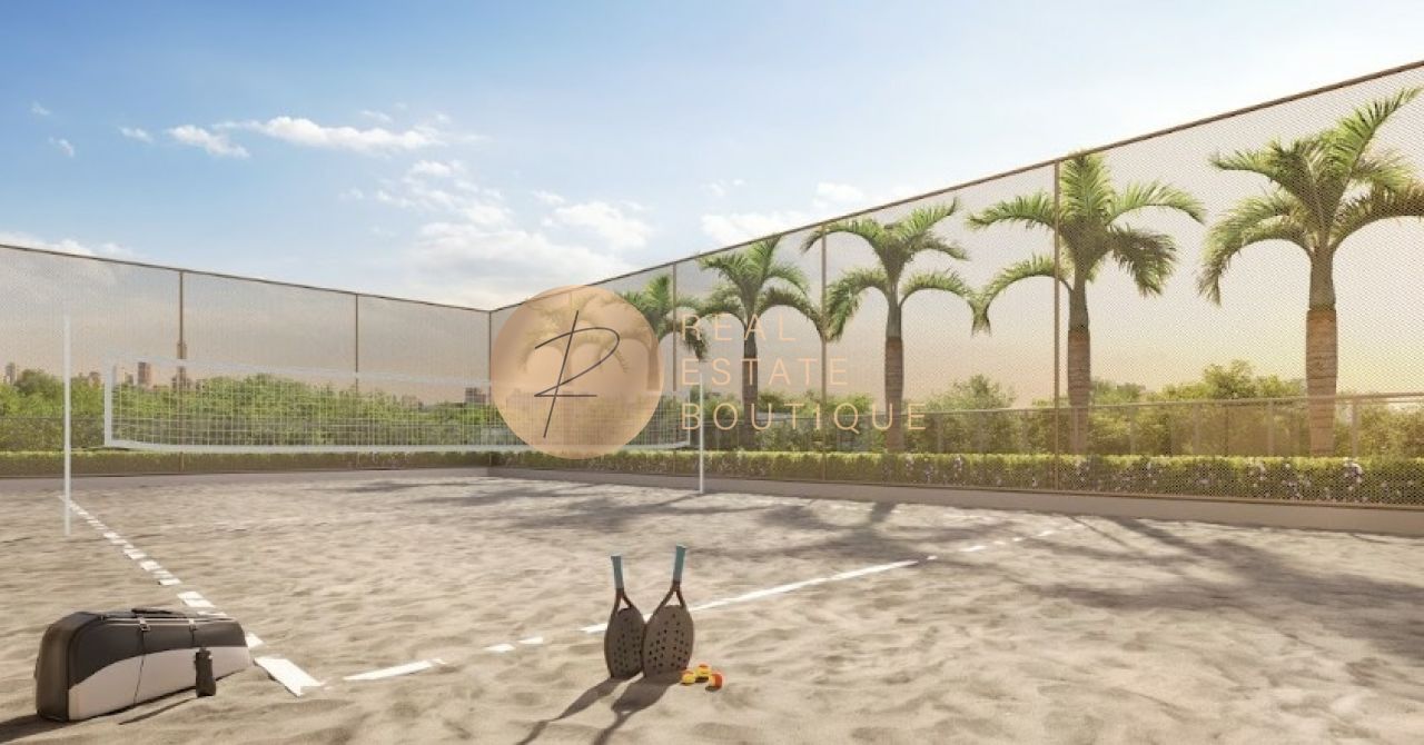 O lazer é digno dos melhores resorts, com piscinas coberta e descoberta, spa, quadra de tênis, academia completa, lounges, espaços gourmet e áreas verdes assinadas por Benedito Abbud.